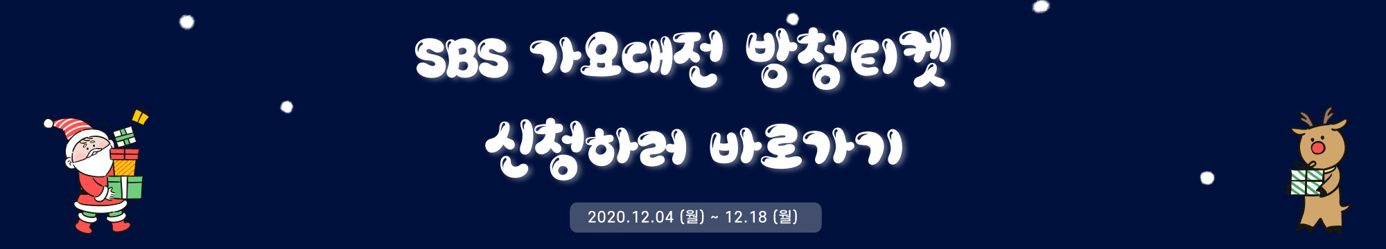 안녕하세요. 엔젤링스입니다. 어느덧 12월이 되었습니다. 이제 연말도 얼마 남지 않았습니다. 그러면서 생각나는 12월 행사들, 크리스마스와 연말을 장식할 연예인들의 무대 중 가요대전이 생각이 나는데요. 12월 25일 크리스마스에 진행되는 SBS가요대전의 라인업과 직접 관람해서 볼 수 있는 방청권 티켓 신청방법까지 만나보도록 하겠습니다.